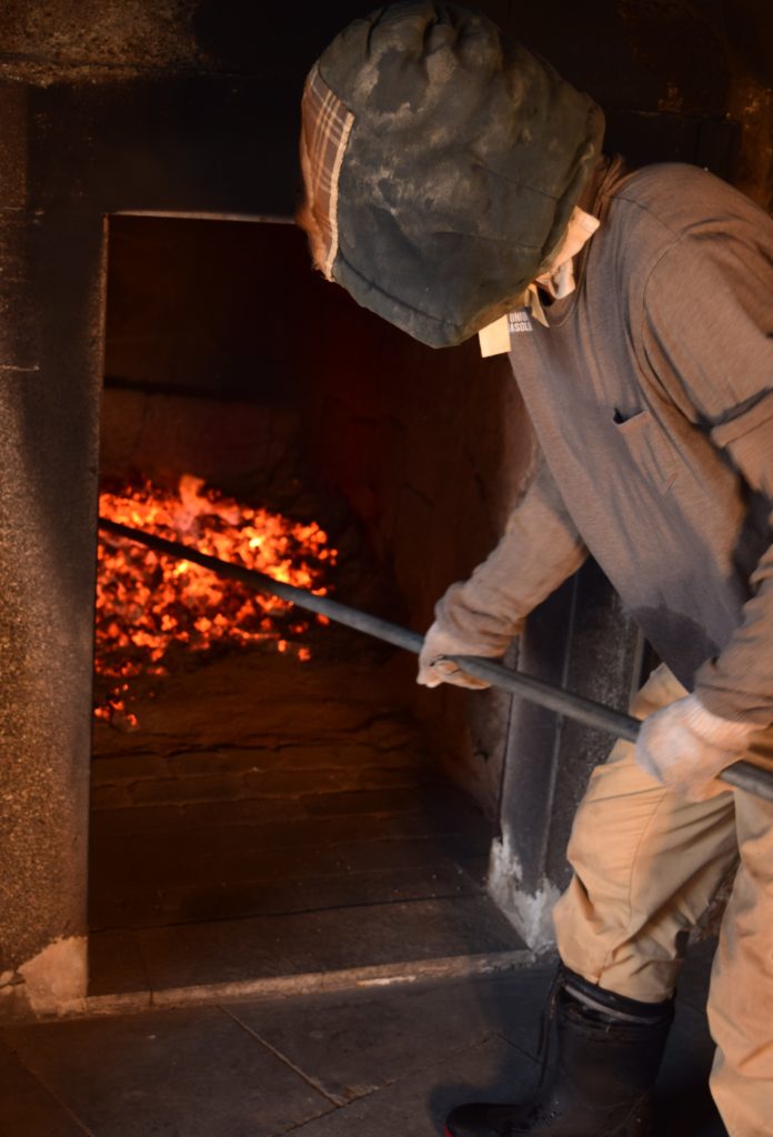 The steaming hot Karafuro will be ready for use by noon, when it opens. Okada heats the chamber twice a day in this manner, at 10 a.m. and 3:30 p.m.
