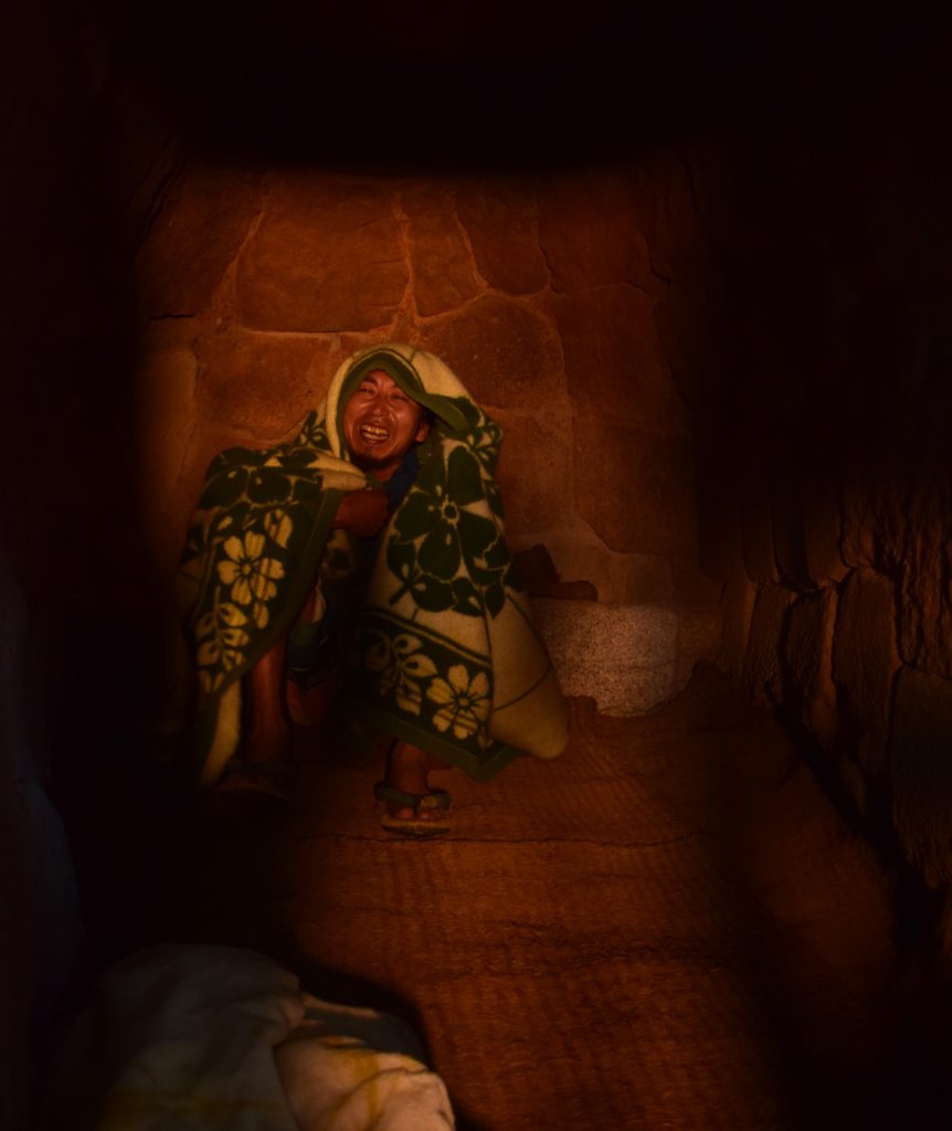 Wearing a sweater, shorts and a pair of straw sandals, he opens a metal door in a stone wall and ducks into a domed chamber. As the inside temperature rises to 150 degree Celsius, Terao quickly shuffles across the floor to prevent his skin from burning. To protect other parts, he sits on a cushion that was chucked over straw mats and wraps a blanket around his body and face. He emerges a few minutes later, his face drenched with sweat.