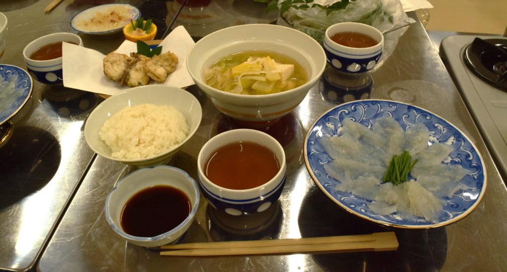 I visit the city to attend a fugu preparation and cooking course in mid-January, the best fishing season for “mafugu” (Takifugu porphyreus).